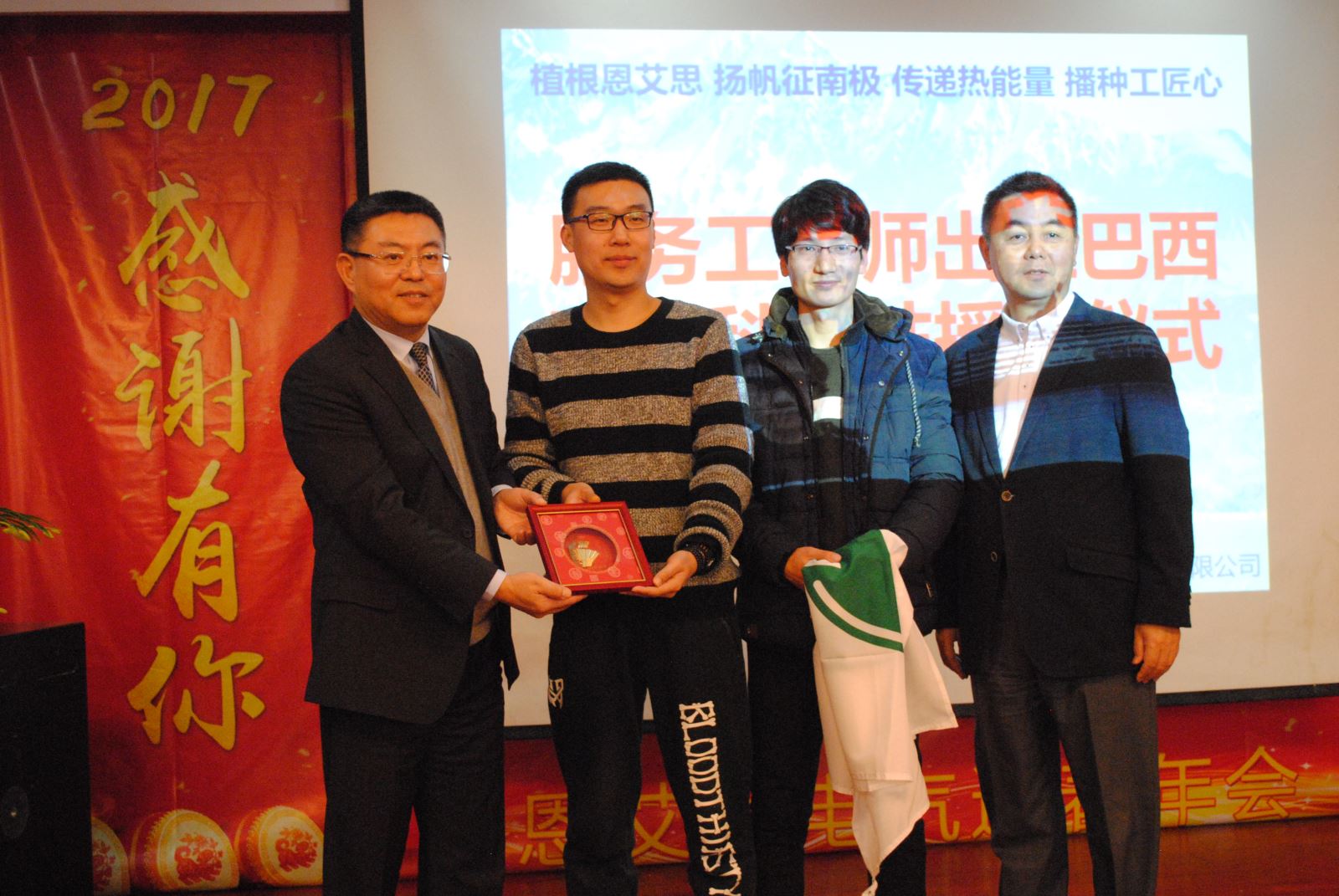 2月2日,恩(en)艾思電氣公司為即將出征巴西南極科考站(zhan)的(de)服(fu)(fu)務(wu)(wu)工(gong)(gong)程師(shi)舉辦了授(shou)旗儀式,公司董事長程箭(jian)先生將公司旗幟(zhi)授(shou)予服(fu)(fu)務(wu)(wu)工(gong)(gong)程師(shi)程朝團,總(zong)經理陳維林先生將寓意一帆(fan)風(feng)順(shun)的(de)船模(mo)贈予服(fu)(fu)務(wu)(wu)工(gong)(gong)程師(shi)程朝團;隨著程朝團發自(zi)肺腑的(de)出征感言,正式吹響了恩(en)艾思電氣征戰(zhan)南極的(de)號(hao)角。