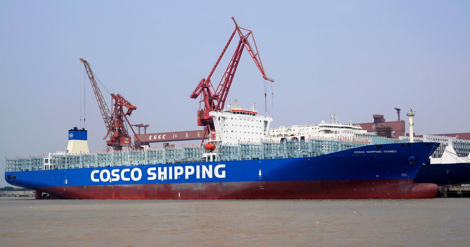 此次試航的是該系列船中的第三艘船”COSCO SHIPPING THAMES (中遠海運泰晤(wu)士河)”號。