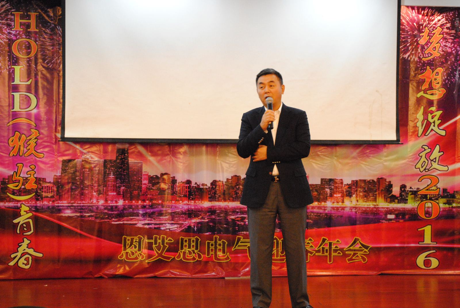 滿(man)載成(cheng)功與收獲的(de)(de)2015年即將揮(hui)手向我們告別,充滿(man)希望與挑戰的(de)(de)2016正微笑著(zhu)向我們走來。1月27日,上海恩(en)艾(ai)思電氣有(you)限公(gong)司全體員工們歡聚于“嘉儀中(zhong)心(xin)”, 舉辦了一(yi)場盛大(da)的(de)(de)恩(en)艾(ai)思迎(ying)春年會。在(zai)喜慶、祥和、熱烈的(de)(de)氛圍中(zhong),大(da)家一(yi)起(qi)告別成(cheng)績卓然(ran)的(de)(de)2015年,共同迎(ying)接(jie)2016年的(de)(de)到來!