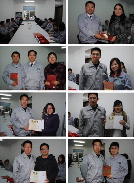 圖為(wei)公司領導為(wei)獲獎者頒發(fa)證書及獎金。