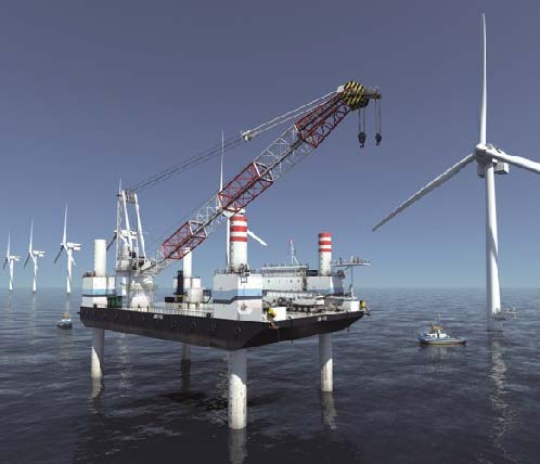 此次JB118 項(xiang)目建造合同是由(you)招(zhao)商重工和Self Elevating Platform JB118 N.V.(母(mu)公司為(wei):Jack-Up Barge B.V.)于(yu)2012 年1 月16 日簽訂,入ABS 船(chuan)級(ji)社,掛巴哈(ha)馬(ma)群島(dao)船(chuan)旗。該平(ping)臺(tai)為(wei)矩形船(chuan)體(ti),4 根樁腿,配備(bei)MSC 液壓(ya)升降系統的自升式平(ping)臺(tai),主吊機(ji)1000t,主要用于(yu)北海南部(bu)45 米水深范圍內的風(feng)電設備(bei)安裝(zhuang)等海洋工程建設。該平(ping)臺(tai)主要設計(ji)參數:船(chuan)體(ti)總長(chang)75.9m, 型寬40.0m, 型深6.0m, 設計(ji)吃水4.2m;四根圓柱形樁腿,長(chang)度為(wei)81.55m, 直徑為(wei)3.5m。