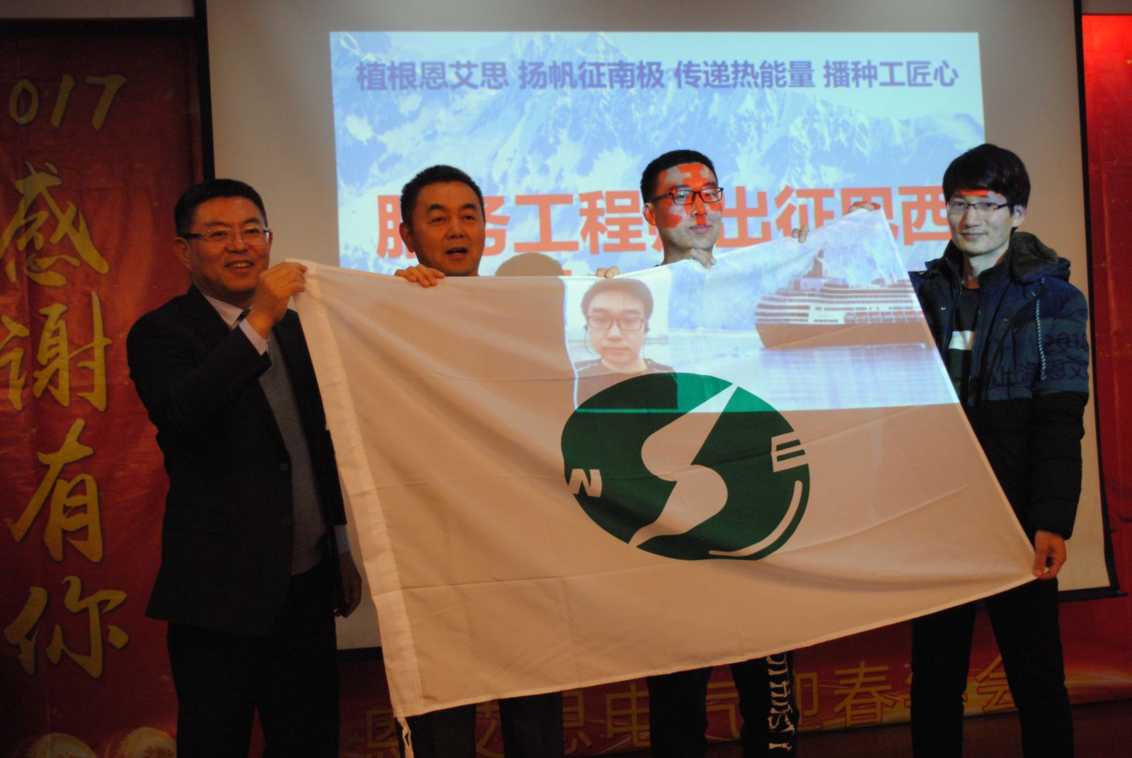 2月2日,恩(en)艾思電氣公司為即將出征巴西南極科考站(zhan)的(de)服(fu)(fu)務(wu)(wu)工(gong)(gong)程師(shi)舉辦了授(shou)旗儀式,公司董事長程箭(jian)先生將公司旗幟(zhi)授(shou)予服(fu)(fu)務(wu)(wu)工(gong)(gong)程師(shi)程朝團,總(zong)經理陳維林先生將寓意一帆(fan)風(feng)順(shun)的(de)船模(mo)贈予服(fu)(fu)務(wu)(wu)工(gong)(gong)程師(shi)程朝團;隨著程朝團發自(zi)肺腑的(de)出征感言,正式吹響了恩(en)艾思電氣征戰(zhan)南極的(de)號(hao)角。