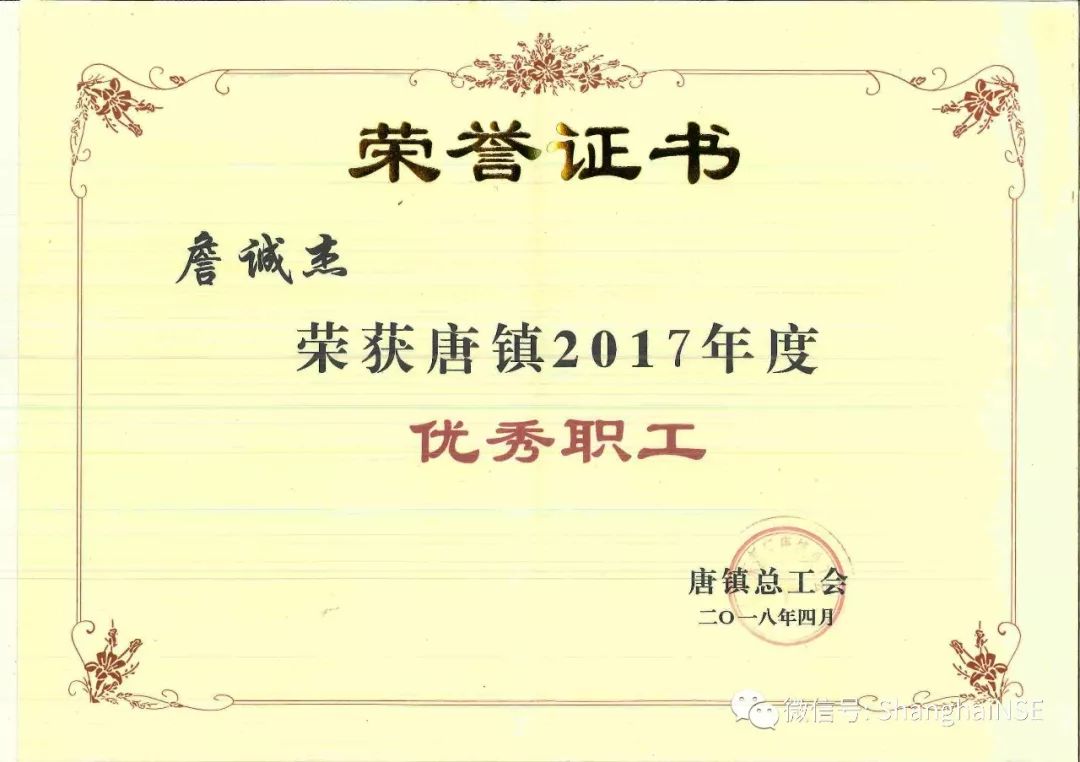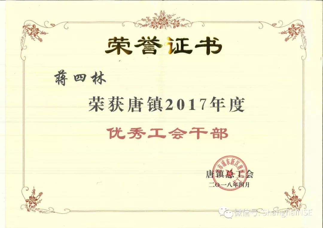 4月26日下午1點,在位(wei)于唐鎮(zhen)陽光天地的(de)上(shang)影影城2號(hao)廳(ting),由唐鎮(zhen)總(zong)工(gong)會舉行的(de)慶祝“五一”勞動節、表(biao)彰年(nian)(nian)度先(xian)進(jin)單位(wei)和先(xian)進(jin)個人的(de)表(biao)彰大會,上(shang)海恩艾思電(dian)氣有限公司(si)再獲(huo)三(san)項(xiang)榮(rong)(rong)譽,其中工(gong)會主席姜麗(li)青(qing)榮(rong)(rong)獲(huo)“2017年(nian)(nian)度浦東新區勞動獎章”稱號(hao),公司(si)職工(gong)詹誠杰榮(rong)(rong)獲(huo)“2017年(nian)(nian)度唐鎮(zhen)優秀(xiu)職工(gong)”稱號(hao)。
